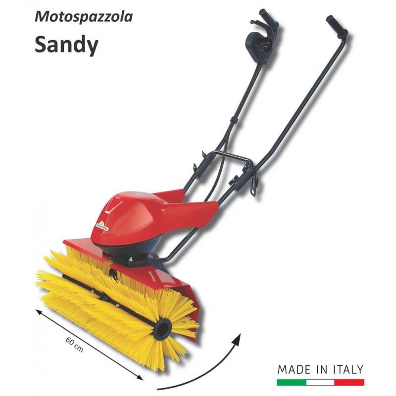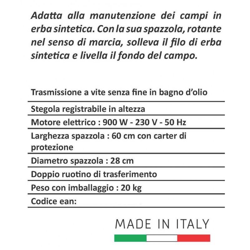 La Sandy รจ una Spazzolatrice che serve a raddrizzare il prato sintetico. La silenziositร e il non inquinamento del motore elettrico la rendono adatta per la manutenzione dei giardini condominiali, terrazzi, giardini di villette ma anche campi da calcetto o tennis interni o esterni.